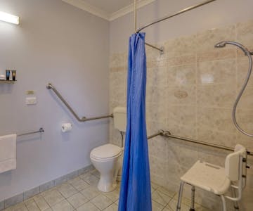 This Accessible Queen room includes a private bathroom with walk-in shower and a hairdryer. The spacious air-conditioned room offers a flat-screen TV with streaming services, kettle, tea and coffee making facilities, microwave and toaster, a seating area and garden views. The unit has 1 bed.