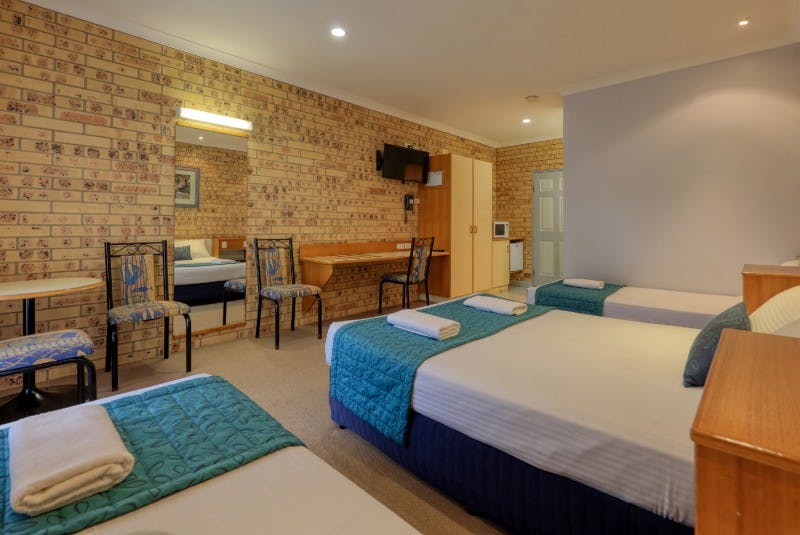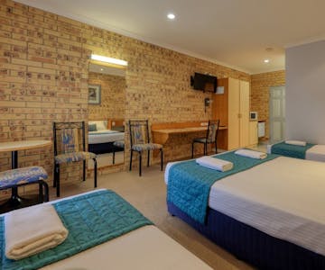 This Family room, featuring a Queen and 2 Single beds, includes a private bathroom with walk-in shower and a hairdryer. The spacious air-conditioned room offers a flat-screen TV with streaming services, kettle, tea and coffee making facilities, microwave and toaster, a seating area and garden views. The unit has 3 beds.